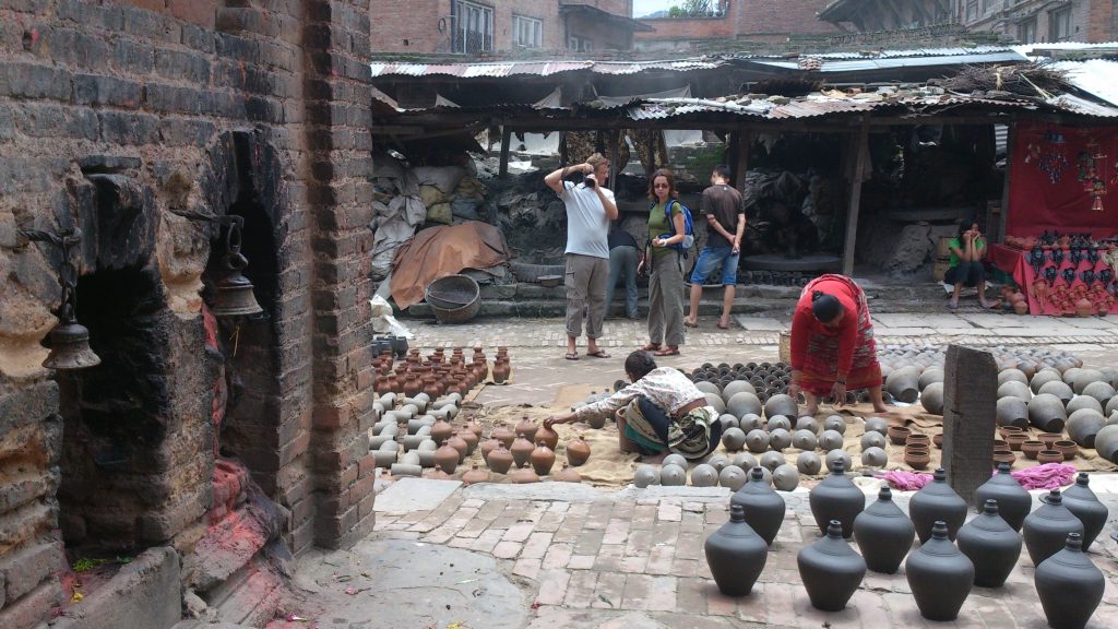 Bhaktapur es una ciudad preciosa, Patrimonio de la Humanidad por la UNESCO, y muy cerca de Kathmandu. Entre templos, palacios y casas de ladrillo rojo está la Plaza de los Alfareros, donde como su nombre indica, se concentran talleres de alfarería y los hornos de paja y madera donde esta se cuece. Tenemos contacto con alguno de los talleres que pueden enseñar a hacer pequeñas figuras con barro mientras pasáis un buen rato. Una buena actividad para que las niñas y niños exploten su creatividad.
