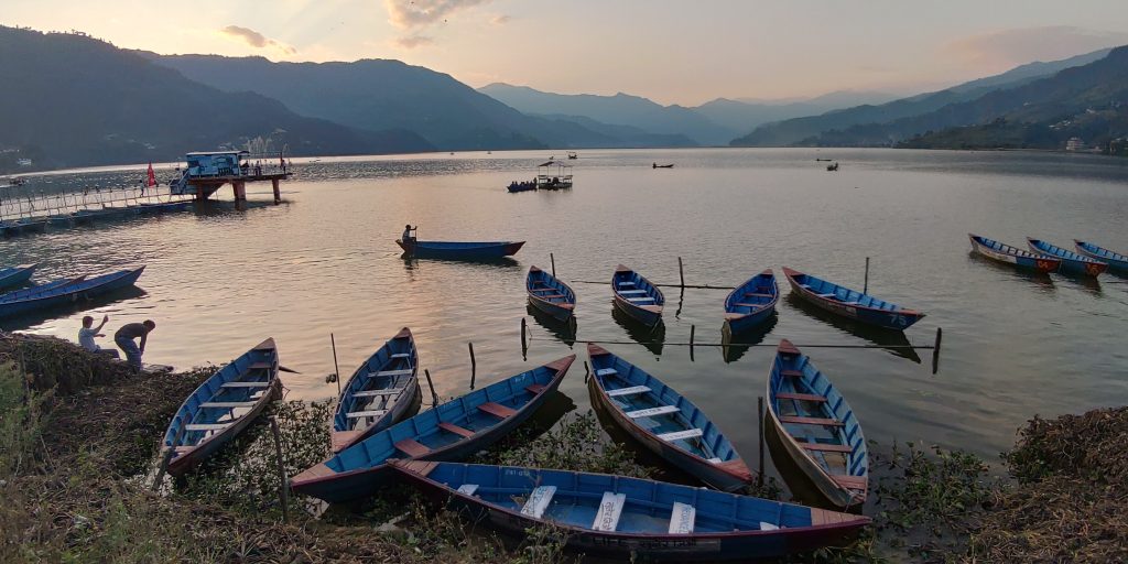 Cuando hablamos de Pokhara hablamos sobre todo del barrio de Lakeside que, como su nombre indica, bordea el lago Phewa. Pokhara siempre es un lugar interesante y ir con niños va bien porque es muy tranquilo, con aceras anchas, el paseo alrededor del lago, la opción de alquilar bicicletas y explorar el entorno. De cara a los niños y niñas una de las actividades que más les puede gustar es navegar con las tradicionales barcas de madera por el lago. Hay diferentes embarcaderos, y se puede ir tranquilamente al pequeño templo de Barahi Mandir situado en una isla cercana, cruzar el lago, o simplemente navegar sin rumbo.