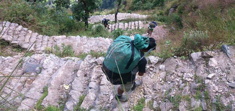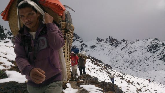 - Porteadores: Cargan sobre sus espaldas vuestro equipo voluminoso. Suelen ser locales, aunque algunas veces los llevamos desde Kathmandu o Pokhara por si hubiera problemas en encontrar porteadores disponibles o por trabajar con gente de más confianza. Normalmente no hablan inglés, conocen los caminos, pero no tienen conocimientos de cómo tratar con el cliente o qué hacer en caso de problemas. No permitimos más de 20Kg por porteador (10Kg por persona).