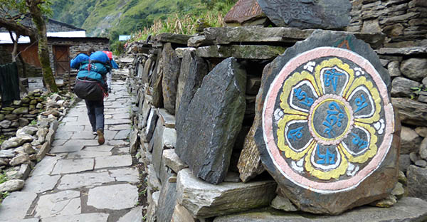 Aunque Nepal es mayoritariamente hinduista, en las zonas de montaña el budismo gana fuerza y esto quiere decir que cada día nos encontraremos con muchas “estupas” (en tibetano chortens), manis (muros o montículos de piedras grabados con mantras), galerías de molinillos de oración y otros elementos religiosos del budismo.